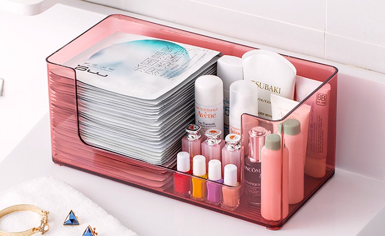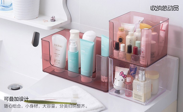 美貌亞克力化妝盒,造型方正,簡(jiǎn)潔優(yōu)雅,邊緣弧度圓潤(rùn);亞克力化妝盒疊加設(shè)計(jì)(隨心組合、小身材、大容量、分類歸納整齊.)